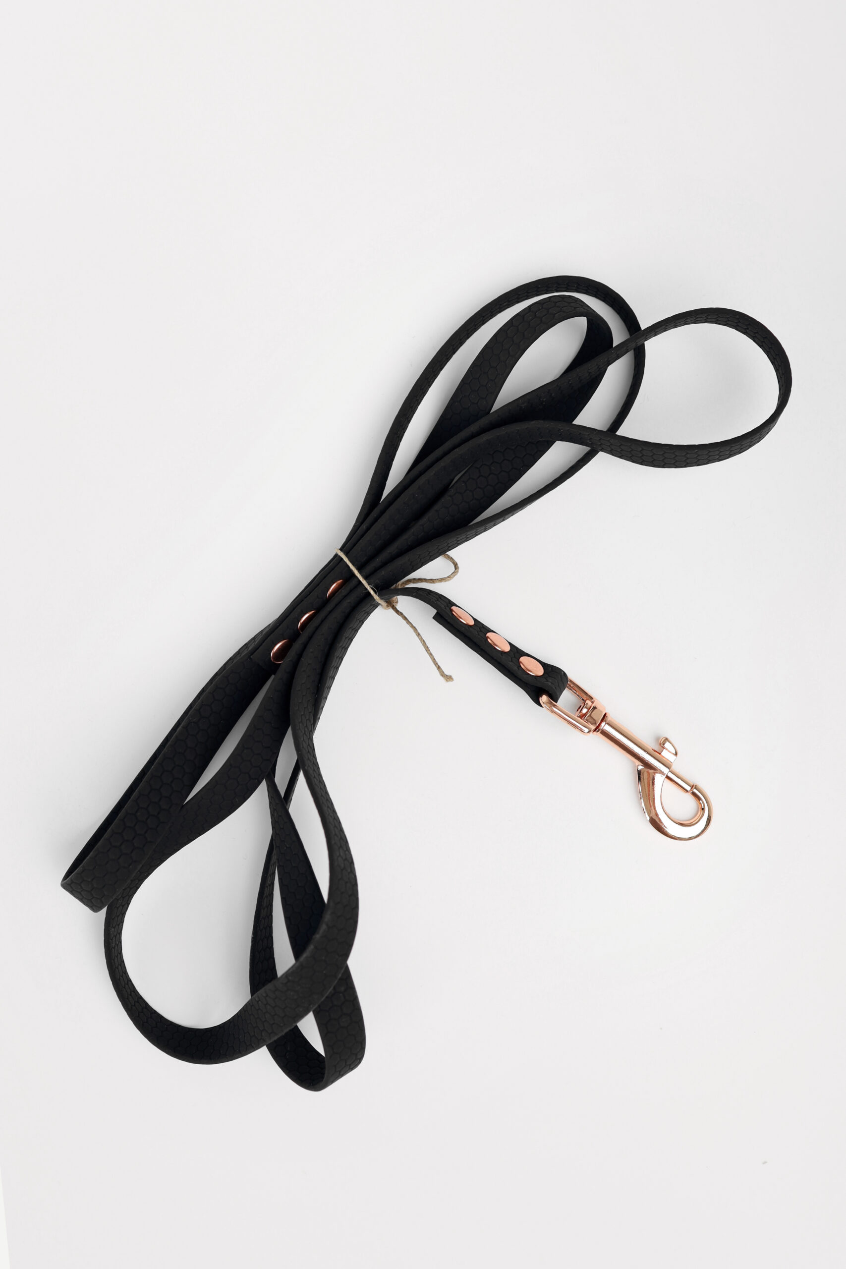 Wytrzymała smycz miejska wykonana z taśmy Hexa o strukturze plastra miodu. Materiał charakteryzuje się wysoką odpornością na wilgoć, zabrudzenia i uszkodzenia mechaniczne. Smycz jest wodoodporna, łatwa do utrzymania w czystości i zachowuje estetyczny wygląd nawet przy intensywnym użytkowaniu.